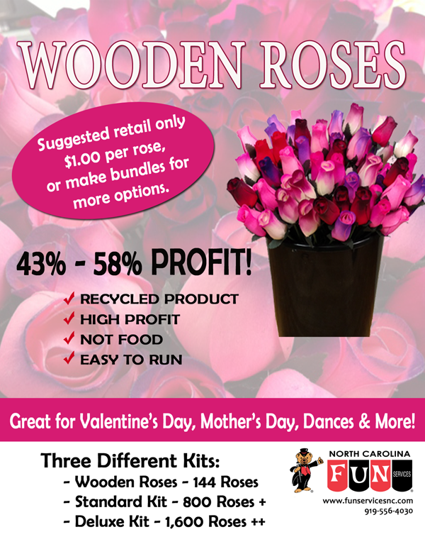 ROSES Wooden Roses Unique and Exciting gift item that is great for Valentine’s Day, Mother’s Day, school dances, and more! Never melts and won’t wilt. IN STOCK AND READY TO SHIP! CLICK TO DOWNLOAD THE ORDER FORM OR COMPLETE OUR ONLINE FORM School or Group Name Name Shipping Address City State Zip Code Email Cell Phone 144 Assorted Color Roses - $82.20/case +$5 shipping per 144 Small Wooden Rose Kit (800 roses) $384/case - FREE Shipping Deluxe Wooden Rose Kit (1600 roses) $672/case - FREE Shipping Terms of Sale (click the checkbox to continue) We use various companies to deliver our products. These companies will do their best to accommodate our customer’s requests but must arrange deliveries according to their routes and schedules. We cannot determine an estimated delivery time on the day of delivery, but we can give you an estimated date of delivery once your order has been processed if you request one. Any shortages must be noted on the delivery ticket before the driver leaves. Refuse any damaged cases and sign for only the number of cases you receive and forward a copy of delivery ticket noting shortage or damage to Fun Services. Payment - All orders must be paid for in full at the time of order, or within twenty days of the original delivery date if part of a Public School. You will be charged 1.5% interest per month on any balance due after twenty days. Payment by credit card option is available for an additional 3% fee. Email or call for a payment link. Certify and order (click the checkbox to continue) I certify that I am the leader responsible for this organization; I am over 18 years of age, and I can be contacted at the address and phone numbers above. I personally guarantee that either the organization I represent or I will pay all invoiced charges, and I further understand that these terms may be restricted and pre-payment may be required prior to shipment if my financial condition or other circumstances warrant. Place Order